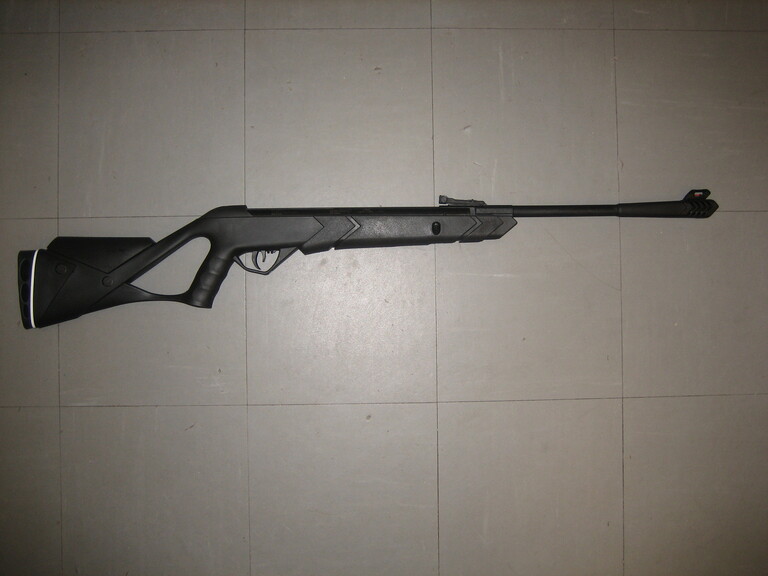 Tehokas, piippuviritteinen kaasumäntäilmakivääri. Lähtönop. n.305m/s, teho n. 23J, synteettinen tukki, säädettävä poskipakka, sinist. raudat, piipun pit. 430mm, kokopit. 1100mm