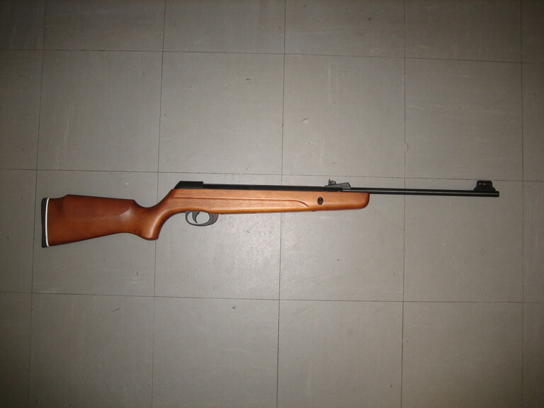 Tehokas ilmakivääri. Puutukki, sinistetyt raudat.
