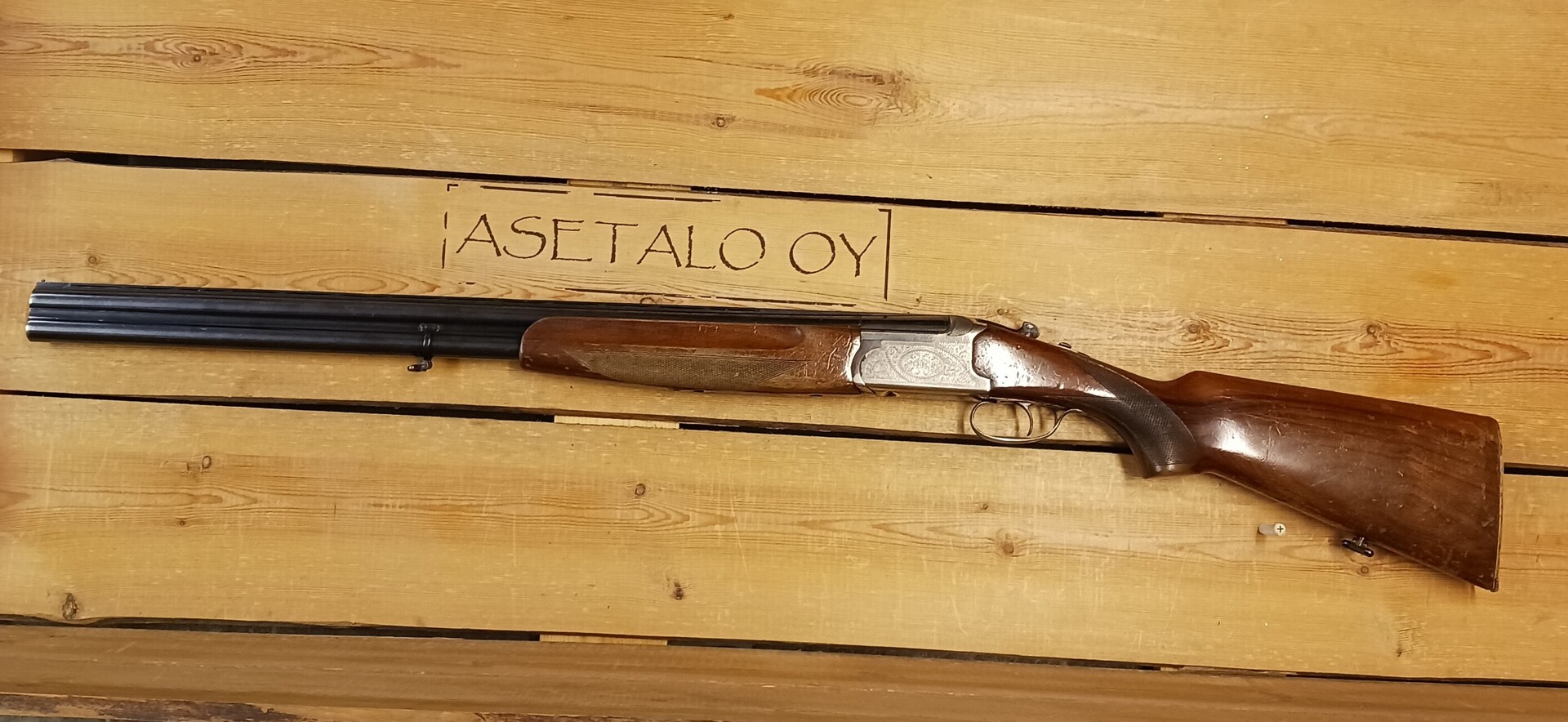 Käytetty päällekkäispiippuinen Lamber haulikko kaliiperissa 12/70, 2 x cyl.