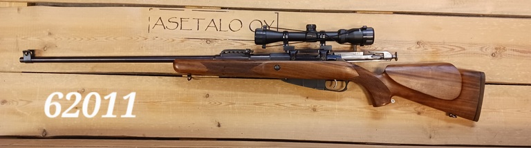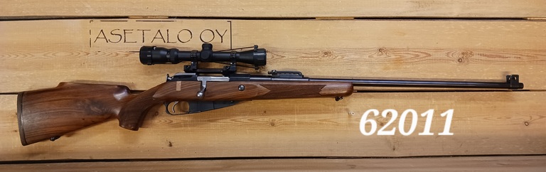Metsästystukkinen M27, piipussa lukee Mäkinen. Center point 3-9x32 kiikari päällä.
