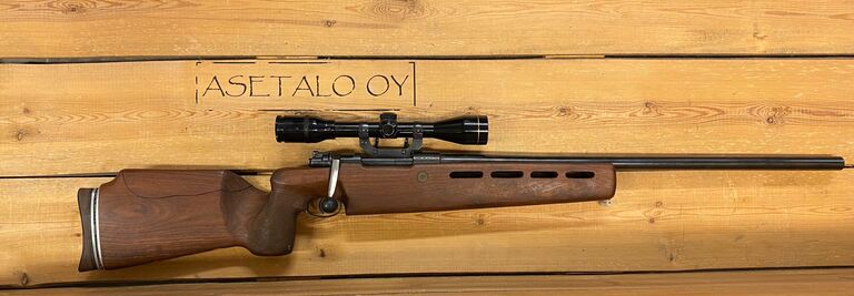 Mauser 98 lukkorungoon rakennettu ratatukkinen kivääri kaliperissa 308 win. Apel sivujalalla