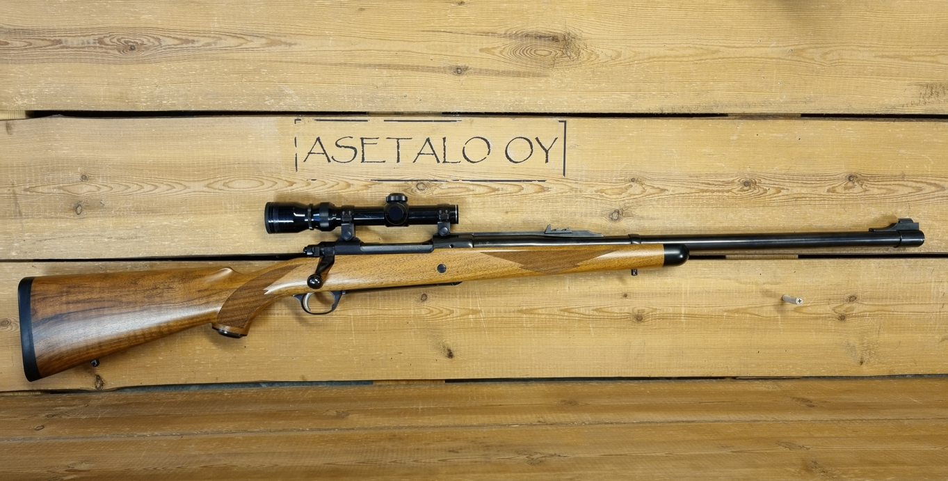 Tosi miehille, todellinen suurriista kivääri Ruger kaliperissa 416 Rigby. Kuin uusi! Mukana Tasco 1-3,5x20 kiikari jalkoineen