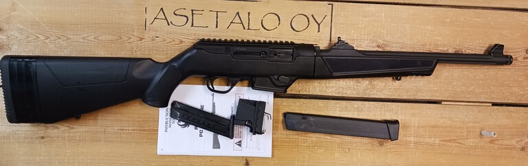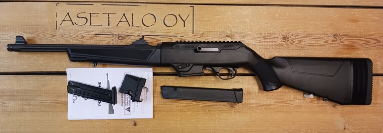 9x19 patruunaa ampuva itselataavakertatuli 9mm karbiini/kivääri. Toiminnalliseen ammuntaan. Synteettisellä tukilla, sopii Glock lippaat! Mukana ase, 1 x Glock 33ptr lipas ja tälle lipaskuiluadapteri, 1 x Ruger 17ptr lipas, ohjekirja. Piipun pituus 16,1" (410mm), kokopituus 870 mm. Vaimenninkierre 1/2"x28 valmiina. Ghost ring tähtäimet. Paino 3,1 kg. #023250