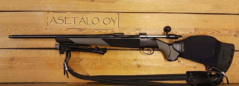 Finnlight tukki, poskipakkapehmuste, Harris bipodit, valjashihna.