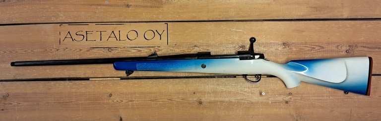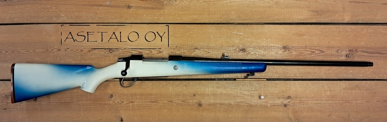 Käytetty Sakolainen äärimmäisen villillä Suomitukilla. Maalattu puutukki, ei etutähtäintä, piipun päässä 14x1 kierre.