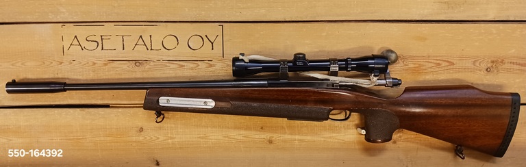 Soiva peli, tällä soittaa vielä kauan. Tikan jalat, Bushnell Banner kiinteä 4x päällä. Mettämallin raudat, Sporterin tukki.