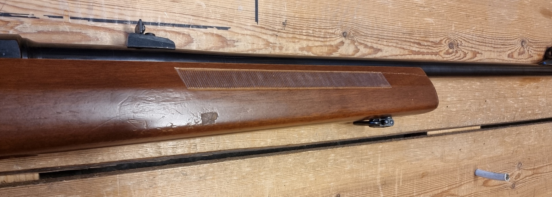 Etutukissa halkeama ja pieni pala lähtenyt, näkyy kuvissa. Muuten tosi siisti rakennettu M55 kaliiperiin 7,62x39.
