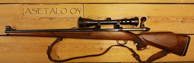 Kokotukkinen Tikka kiikarijaloilla, kaliiperi .30-06. Mukana Tikan jalat + Helia Super Kahles 3-9x40 kiikari!