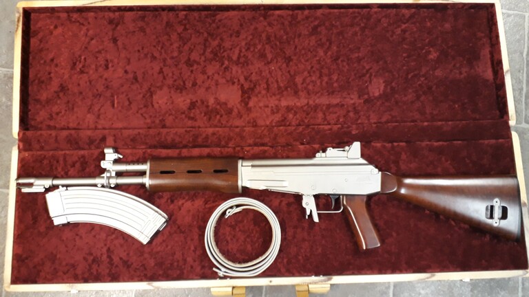 Harvinaista herkkua! Valmetin 60v juhlamalli M62. Kal 7,62x39, ampumaton, visakoivu laatikossa, kromattu, puuosat.