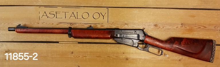 Winchesterin lukkorunkoon tehty .45-70 kaliiperin vipulukkokivääri Marlinin piipulla ja kierteellä! Härski laite, tästä edullisesti .45-70 puskajyyrä!
