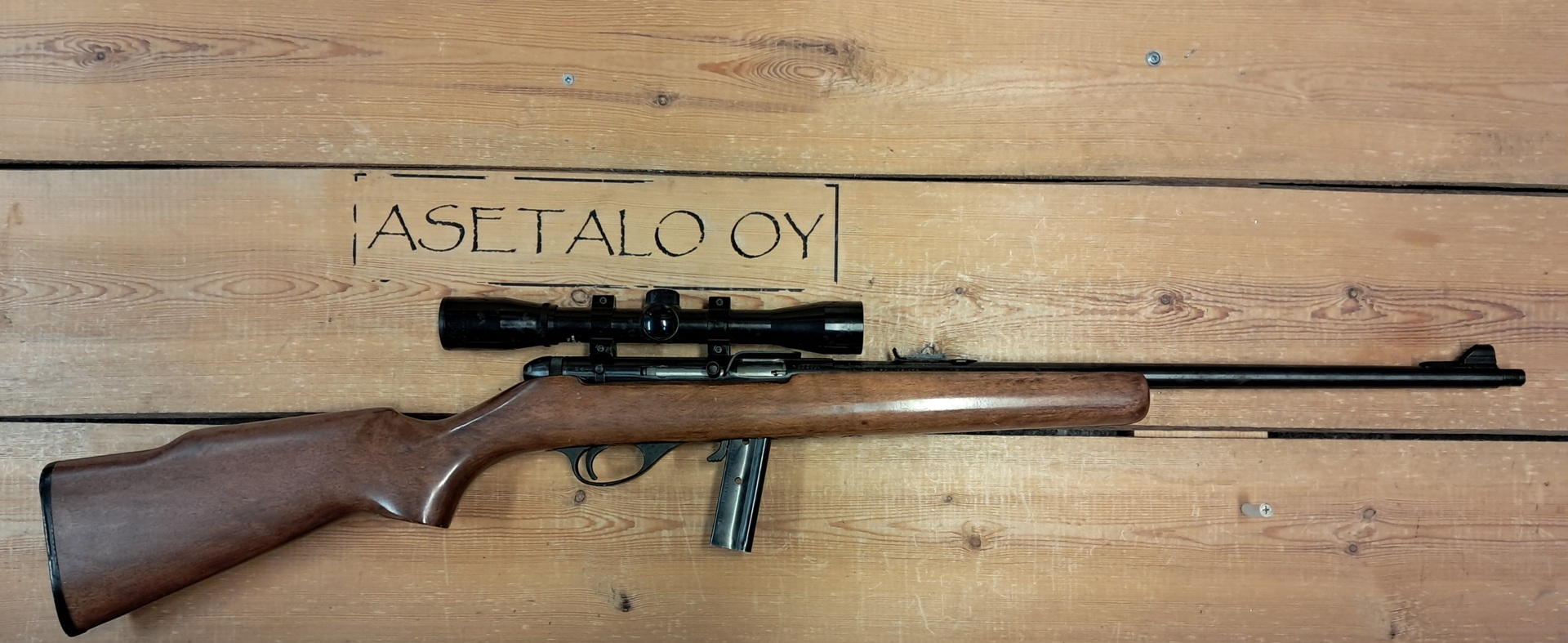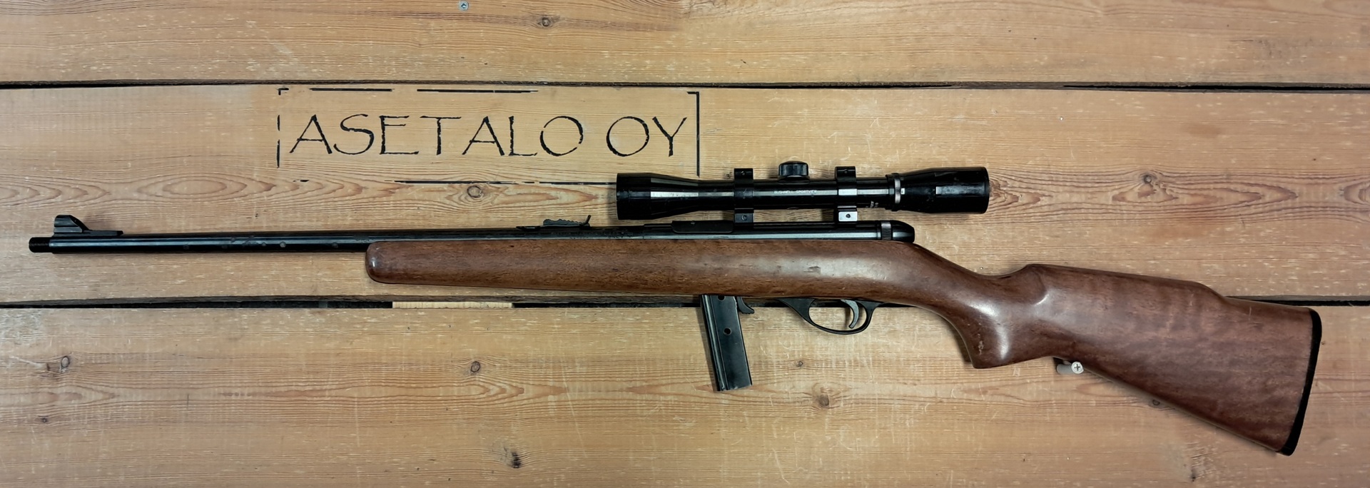 Bushnell Sportview 4x32 kiikarilla varustettu puoliautomaatti pienoiskivääri.