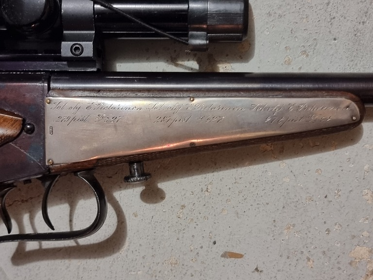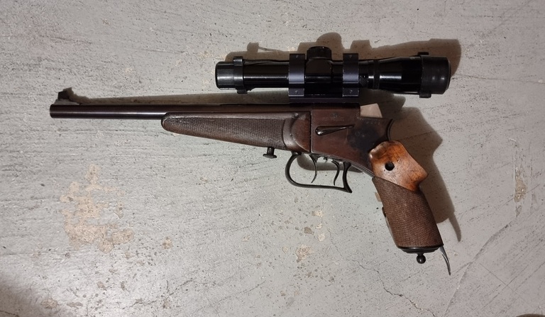 Pystykiilalukkoinen tarkkuuspistooli kaliiperissa .22 LR. Sotilasohjaajien käytössä ollut 20-luvulla, laatta näkyy kuvassa.