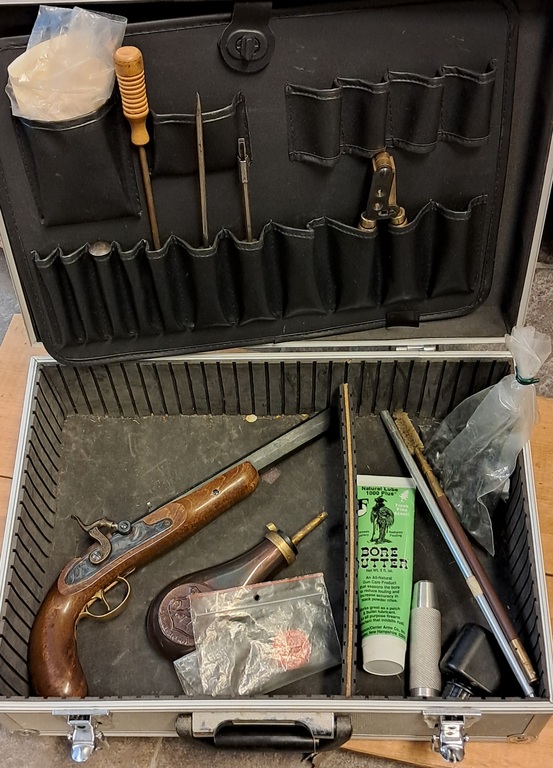 Siistikuntoinen nallilukkopistooli. Mukana salkku ja tarvikkeita.