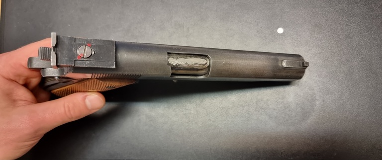 Keräilykappale! Colt AMU tehtiin jenkkiarmeijalle tarkkuuspistooliksi sotien jälkeen uniikissa kaliiperissa .38 AMU. Tämä yksilö porattu.