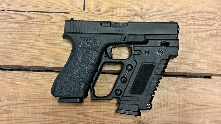 Lisäkahva on ilmeisesti liimattu kiinni aseen runkoon.