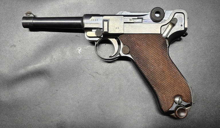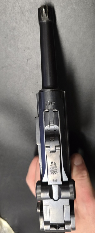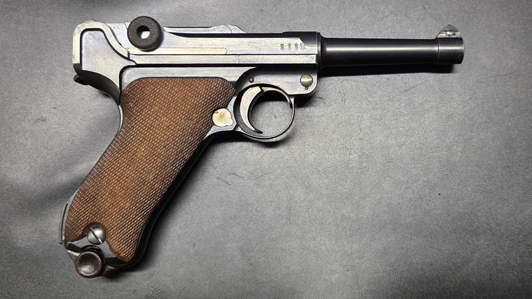 Todella siisti 9mm Parabellum. Vanhat Saksan armeijan merkinnät, muuten numerotarkka, mutta piippu vaihdettu. Silti saksalainen piippu, numero hinkattu aika nätisti pois. Lippaassa ei numeroa. Kunto todella hieno.