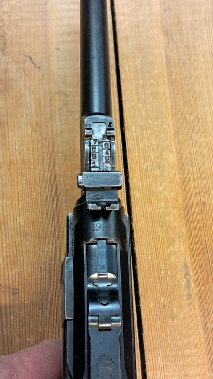 Numerotarkka käytetty tykistömallin Parabellum. Alkuperäiskuntoinen.