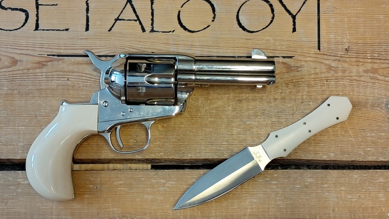 Todennäköisesti ampumaton, kuin uusi nikkelipäällystetty Thunderer "Doc Holliday" malli, "ultra ivory" kahvoilla. On todella hieno.