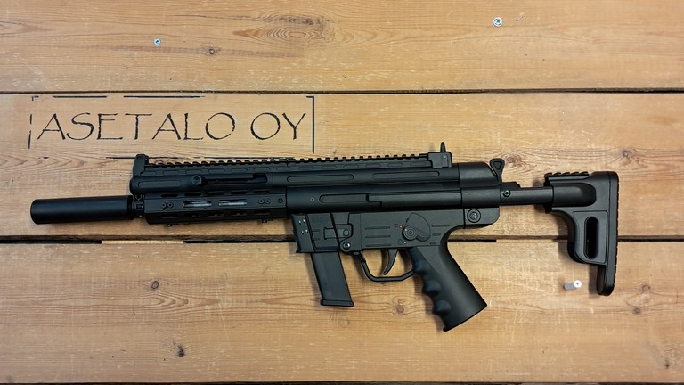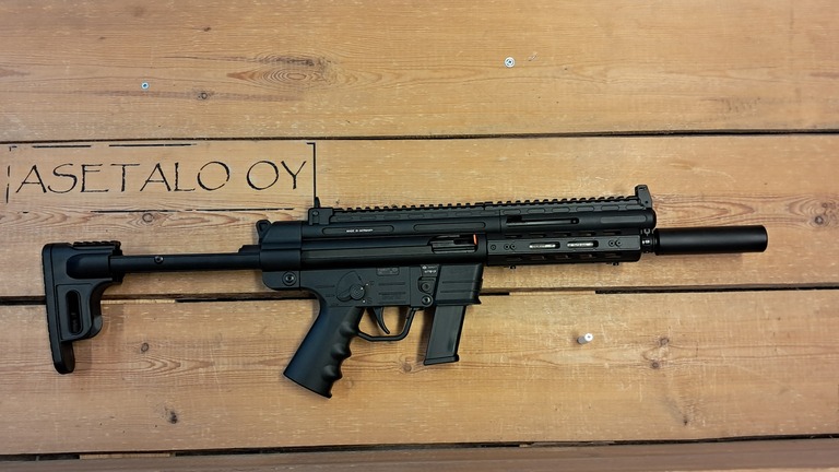 Hyllyssä GSG:n uusi 9mm PCC. Hyllystä löytyy heti myytävää mallia johon on pinnattu piipun jatke (feikkivaimennin), mutta jos haluat pyssyn pinnattuna valitsemallasi suukojeella, ota yhteyttä asetalo@asetalo.fi mitä laitetaan piippuun kiinni. Valmistajan mukaan 25 metrin etäisyydellä 2 cm hajonta, 50 metrillä 4 cm, sadassa metrissä 7 cm.