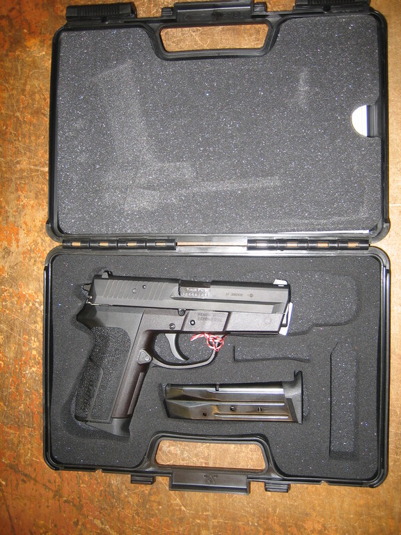 Sigin 9mm pistooli! Mukana muovilaukku, yht. 2 lipasta.
