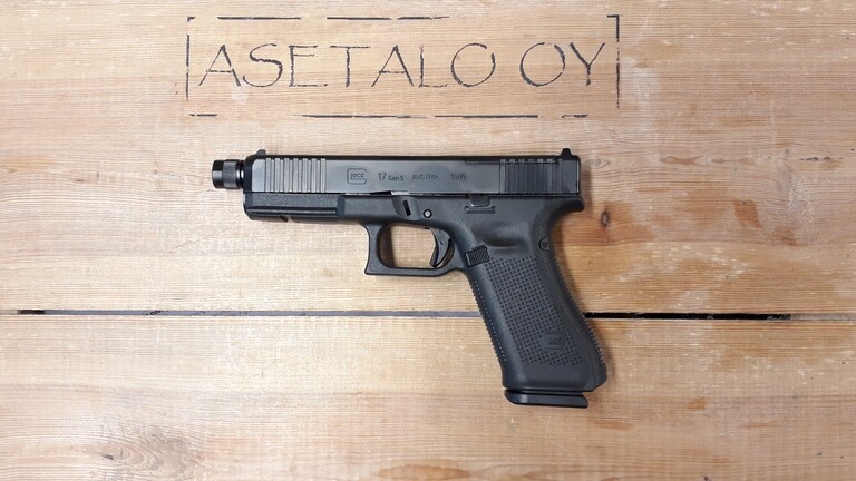 Glock 17 Gen5 MOS malli varustettuna 13,5x1 kierrepiipulla. Mukaan kahvasetti, pikalaturi, 2 lipasta, puhdistusvälineitä ja MOS adapterilevy numero 02 johon sopii Ameriglo, Trijicon ja Holosun (paitsi 509) punapisteet.