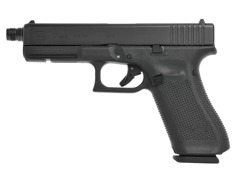 GLOCK M17 Gen5 pistooli 13,5x1 kierrepiipulla. Mukaan puhdisusvälineitä, kierreholkki, kahvasetti ja 2 lipasta + pikalaturi.