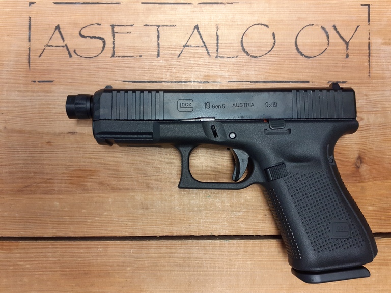 Glock M19 Gen5 pistooli 13,5x1 kierrepiipulla, ei taskuase