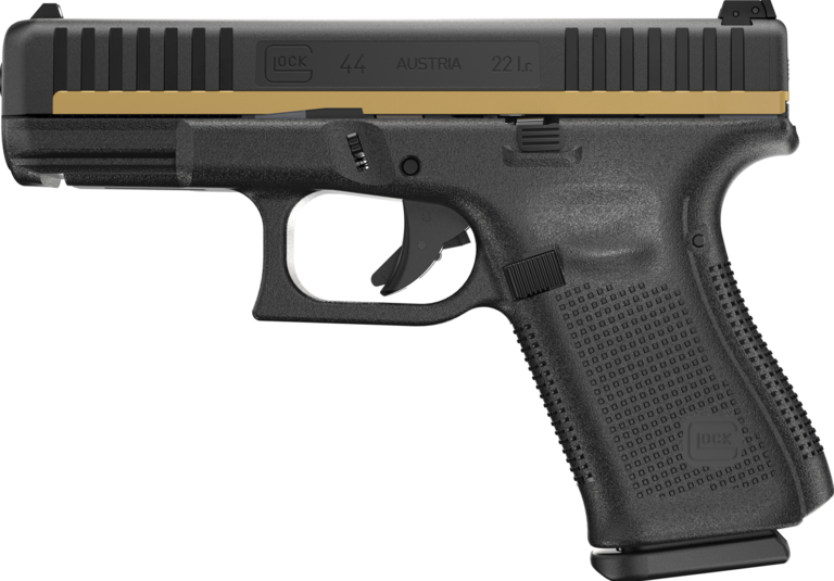 Glockin malli 44, uutuutena Golden Line kuosi! TASKUASE ELI VAATII TASKUASEEN LUVAN! Kaliiperi .22lr, kevyt ja kestävä polymeeri/teräs hybridiluisti suunniteltu varta vasten mallille 44. Glockin tuttu Safe Action System, ase on täysin molemminkätinen, MBS kahvasäädöt (mukaan 2 eri kokoa), Glock Marksman -piippu, 10 patruunan polymeerilipas, säädettävä polymeeritakatähtäin (slim), luistissa etu-urat (front serrations), magwell, ghost hole eli luistin/piipun päällä on reikä, josta näkee onko patruunapesässä patruuna vai ei. Mukaan 2 lipasta, puhdistussetti, tähtäinten säätötykalu, käyttöohjekirja, M ja L koon backstrapit.