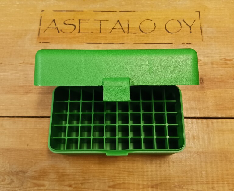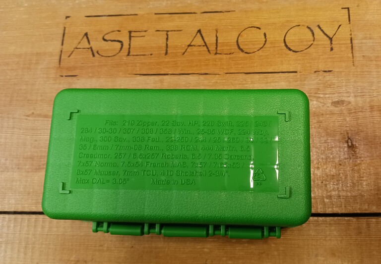 Patruunarasia 50:lle 243/284/30-30/307/308/358Win, 25-35, 22-250Rem, 7mm-08Rem, 444Marlin, 6,5Creedmoor, 7x57, Max patruunan pituus (OAL) 3.05" n. 77,5mm.