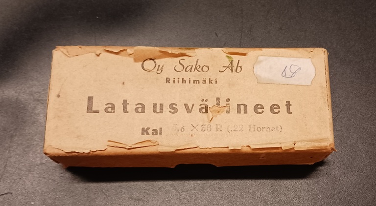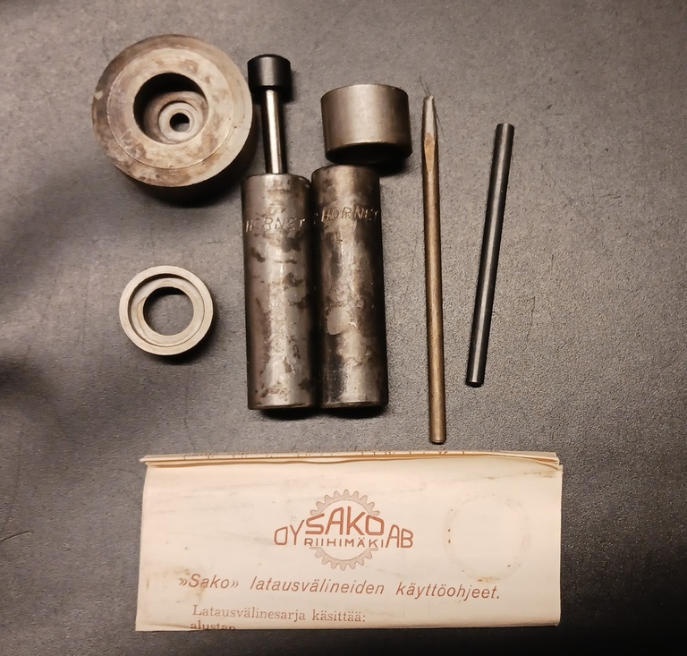 Historiaa, vanhat Sakon latausvälineet .22 Hornetille.