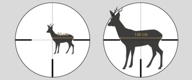 Vaikka onkin SFP ristikko, LP7 muotoilu mahdollistaa etäisyyden mittaamisen: 9x suurennoksella, jos peura seisoo noin 100 metrin päässä, jos se mahtuu ristikon keskipisteen ja vaakapalkin väliin (≙ 70 cm). Se seisoo noin 50 metrin etäisyydellä, jos se mahtuu vaakapalkkien väliin (≙ 140 cm).