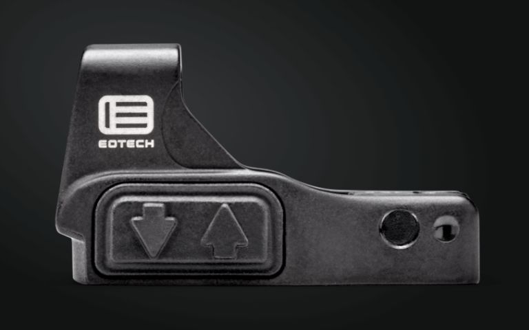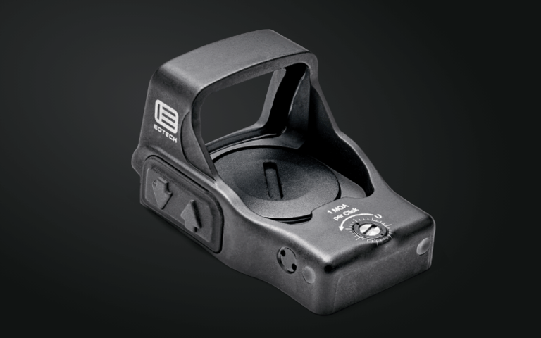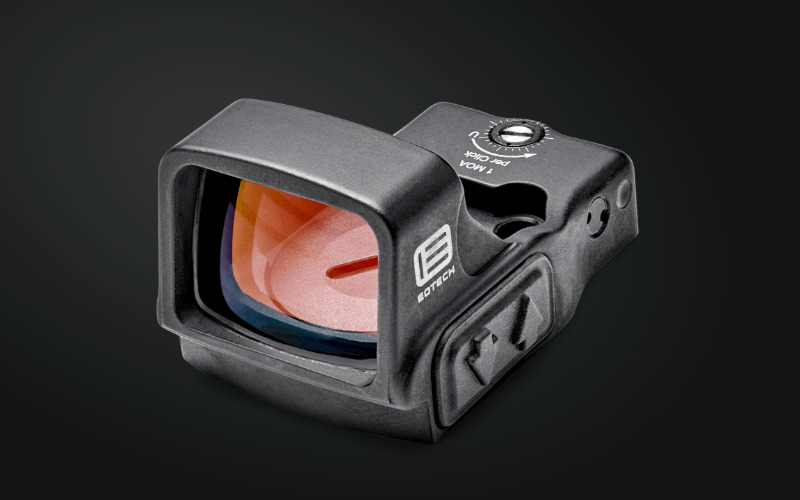 Eotechin uusi punapiste. Toimii yhdellä päältäladattavalla CR2032 paristolla, käyttöaika paristolla 20 000 tuntia. Sopii Leupold Deltapoint Pro -levyihin. Mukaan työkalut, ruuvit, kuminen suoja ja paristo. Mitat 47 x 30.5 x 25.4 mm, paino 35 grammaa. 8 päiväasetusta ja 1 pimeänäkölaitteille.