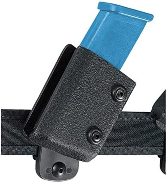 Safariland McCorm säädettävä KYD oikeakätinen kotelo. Lipaskotelossa on kaksi kiristysruuvia takaosassa, jotka mahdollistavat keskiosan säädön. Avoin etuosa mahdollistaa nopean latauksen ilman, että etusormi osuisi koteloon. Kotelo on säädettävissä mihin tahansa kulmaan 90° sisällä.