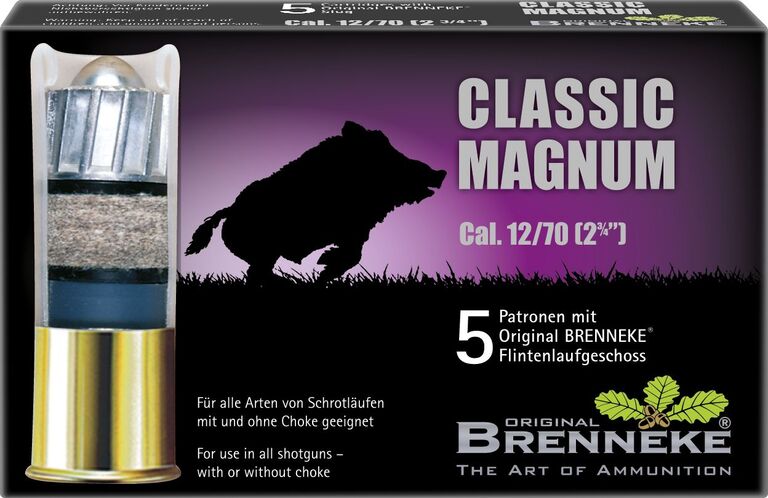 Perinteinen Brenneken valmistama täyteinen, 12/70 31,5g. Rasiassa 5 kpl. Sopii kaikille piipuille.