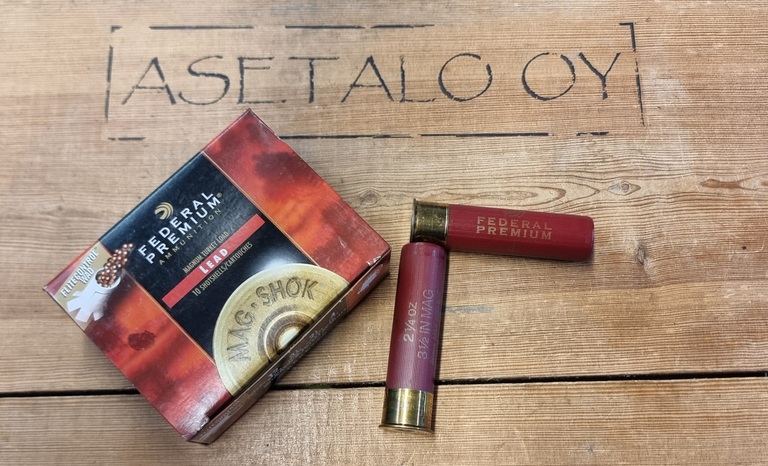- Haulikoko no:4 3,3mm, lataus 63 grammaa