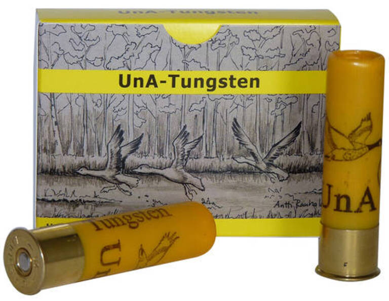 Una Tungsten patruunan haulimateriaali on lähes puhdasta Volframia joka on peräti 70% raskaampaa kuin lyijy. Laadukas patruuna joka painonsa takia säilyttää tehonsa pidemmän matkan päähän. Kaliiperi 20/76, lataus 32g, haulikoko 2,75mm (6), lähtönopeus 380 m/s. Pakkauskoko 5kpl