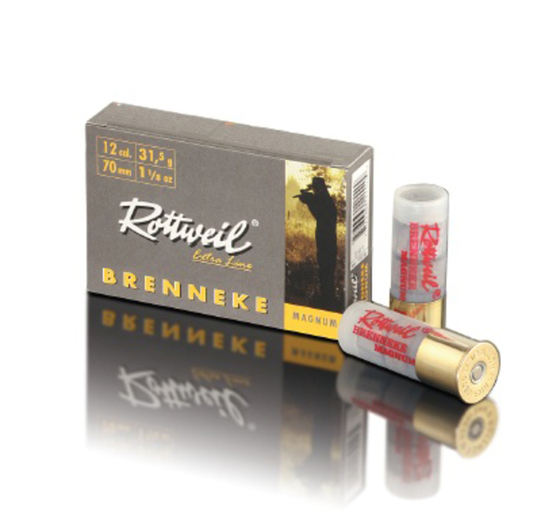 Rottweil 12/70 metsästystäyteinen Brenneken Classic Slug kuulalla. 31,5g, rasiassa 10 kpl, huopatulppa, lähtönopeus 415 m/s.