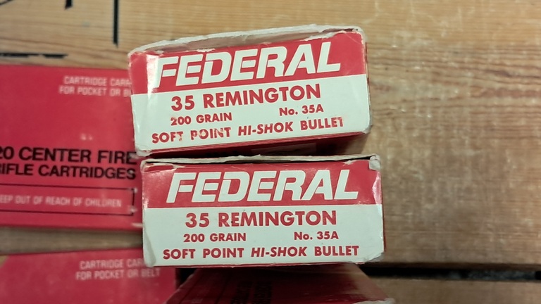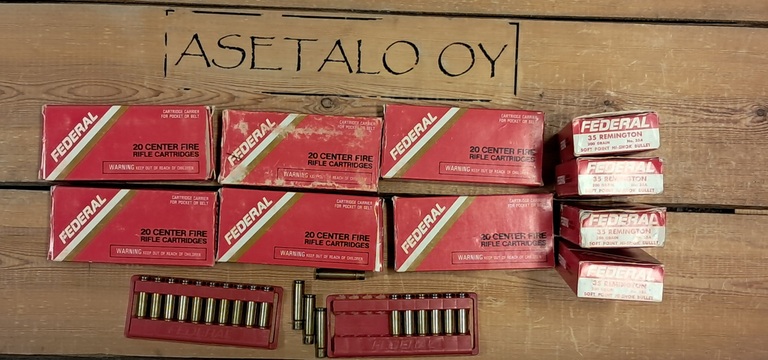 210 kpl Federalin valmistamia hylsyjä kaliiperiin .35 Remington. Suurin osa kerran ammuttua.
