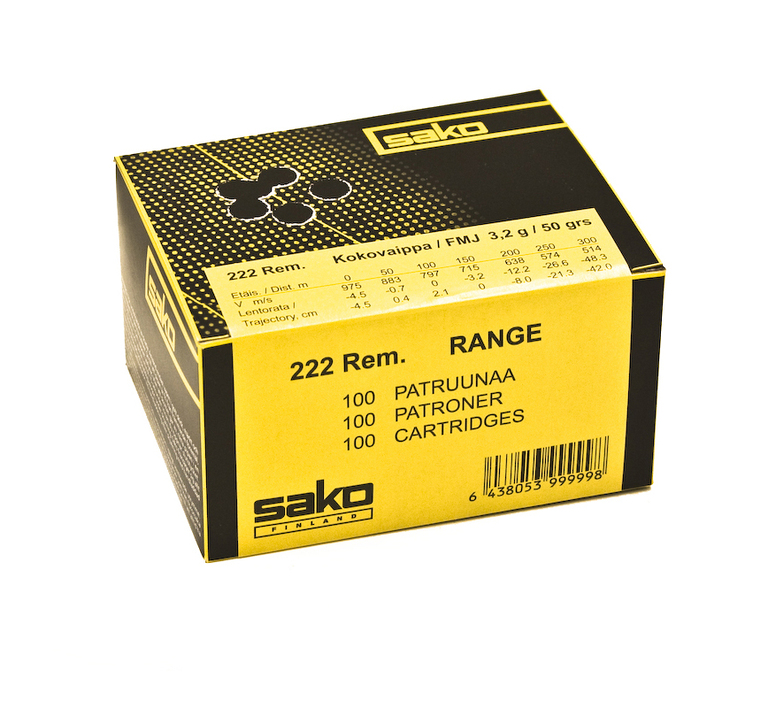 Sako 222 REM Range kokovaippapatruuna tarkkuusammuntaan, turkiseläinten ja lintujen pyyntiin.