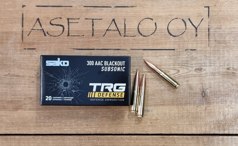 Sako TRG Defense linjaston .300 Blackout aliäänipatruuna. Luodin paino 14,3 g/ 220gr, tyyppi Open Tip Match