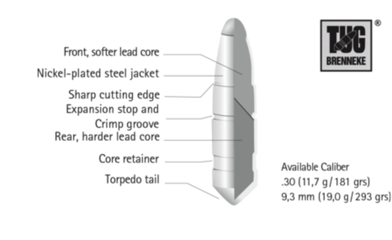 BRENNEKE keksi binukleaarisen osittaisen fragmentointiammuksen. Riistaan osumisen jälkeen etuydin katkeaa, kun taas takaosa varmistaa syvän tunkeutumisen ja ulostulohaavan. Toisin sanoen: maksimaalinen energian vapautuminen ja pysäytysvoima, joka vastaa riistan kokoa. Alkuperäisen BRENNEKE-terävän leikkuureunan ansiosta on seurattava verijälki, kun etsitään kaatoa. Universaalit kaksiytimiset osittaiset sirpalointiammukset sopivat ihanteellisesti kaikentyyppisiin ja -kokoisiin riistaeläimiin. Täysin luotettava pysäytysvoima ja riistan nopea tappaminen aiheuttamatta tarpeettomia haavoja tai kärsimystä. Maksimaalinen lihan säästö Luodin vaipparakenne erinomaisella tunkeutumisella CuNi-pinnoituksen ansiosta minimoi piipun likaantumisen. Terävä reuna leikkaa karvan ja ihon läpi. 25kpl/rasia.