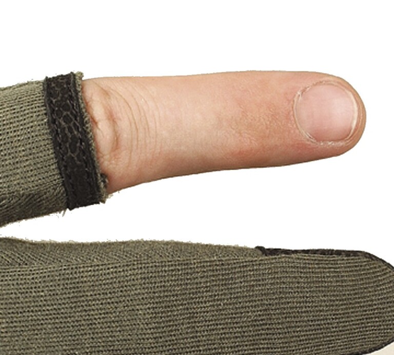 Kämmenosien toinen nahkakerros tarjoaa tuo ja on ergonomisesti leikattu estämään hanskan rypistymistä puristusotteessa, samalla kun vaahtomuovipehmuste vaimentaa rekyyliä. Luistamaton Posi-Grip-materiaali varmistaa tukevan otteen aseita tai työkaluja käsiteltäessä.