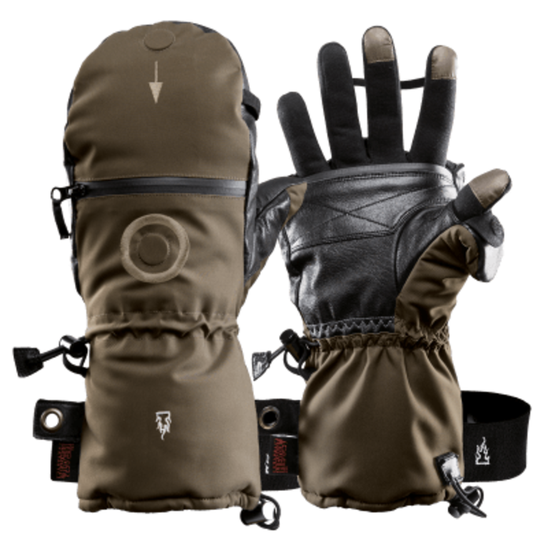 Hengittävä, erittäin kovaa tuulta ja vettä hylkivä kangas. Ensiluokkainen PRIMALOFT Gold eristys, joka on jopa 55 % kierrätettyä materiaalia. Lisätasku HEAT käsilämmitin tyynylle. Vuohennahkainen kämmen on pehmeä ja vankka. Sormikkaiden päät on valmistettu materiaalista, joka sopii kaikille kosketusnäytöille. Koko 11, väri Tarmac/ruskea.
