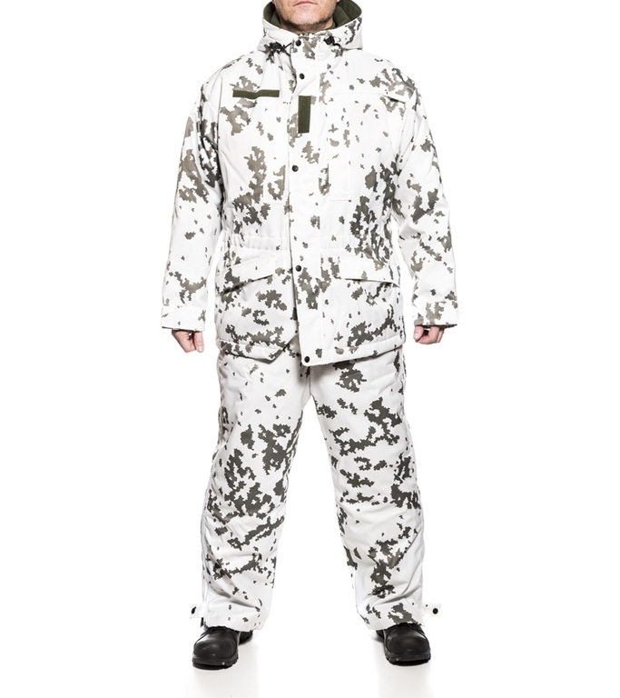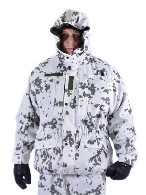 Puolustusvoimien lumipukukankaasta valmistettu toppatakki. Origopron valmistama takki toimii erinomaisesti niin arki- kuin metsästyskäytössäkin. Sen kaksinkertaisen vuorikankaan välissä on tehokas eriste, joka pitää lämpimänä Suomen pakkasilla. Hihansuiden tarrakiristyksillä suljet kylmän ja viiman ulkopuolelle. Tilavan hupun alle sopii ajokypärä tai turkislakki ja tarvittaessa huppua voidaan pienentää takana olevalla säätönauhalla.