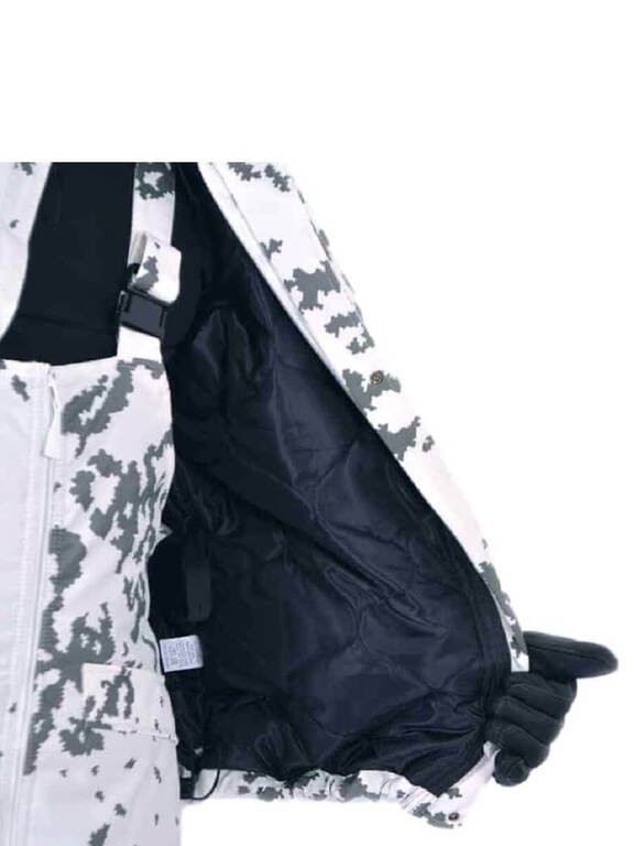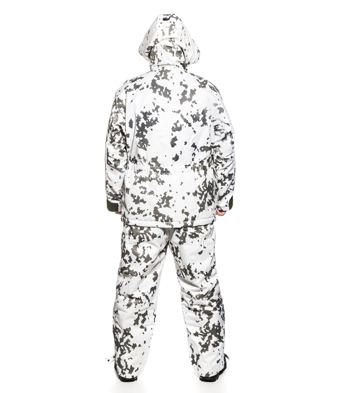 Puolustusvoimien lumipukukankaasta valmistettu toppatakki. Origopron valmistama takki toimii erinomaisesti niin arki- kuin metsästyskäytössäkin. Sen kaksinkertaisen vuorikankaan välissä on tehokas eriste, joka pitää lämpimänä Suomen pakkasilla. Hihansuiden tarrakiristyksillä suljet kylmän ja viiman ulkopuolelle. Tilavan hupun alle sopii ajokypärä tai turkislakki ja tarvittaessa huppua voidaan pienentää takana olevalla säätönauhalla.