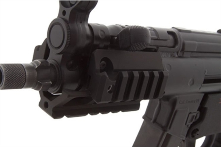 3 picatinnykiskoa B&T:n MP5K etutukissa. Paino 147 grammaa.