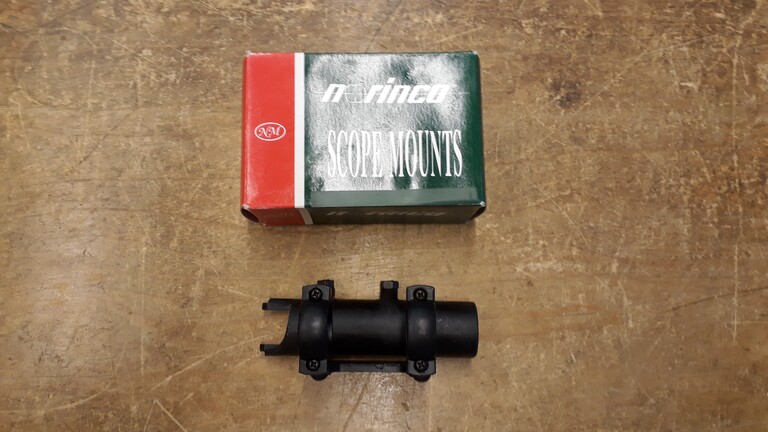 Rautaa, tehty kiinassa. Melkein vintagea jo. Renkaan alareunasta jalan yläreunaan on 18mm eli tämä on kiikarin alle jäävä tyhjä väli.