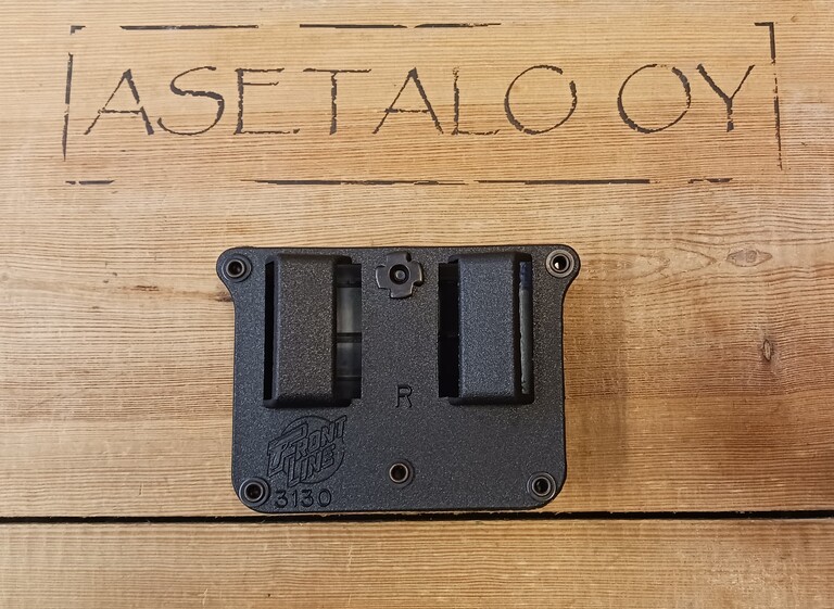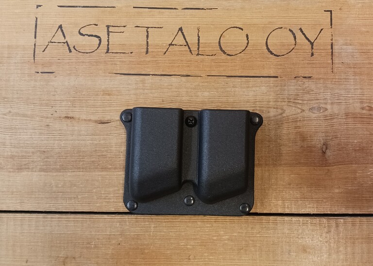 40 mm vöihin sopiva tuplalipastasku, Glock 9 mm lippaille. Polymeeriä.