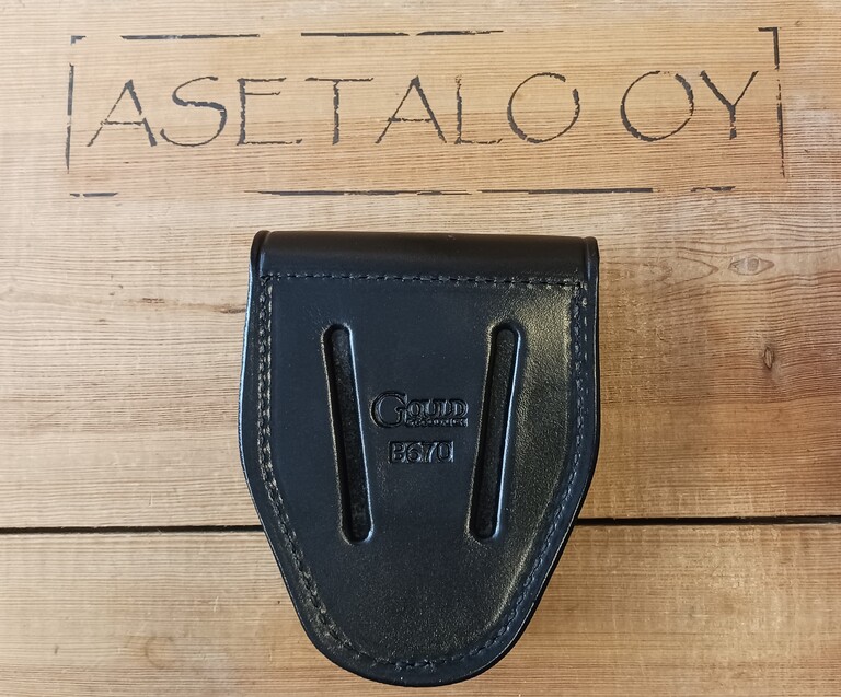 Materiaali nahkaa, sopii 2 1/4" vyölle, läpän kiinnitys nepparilla, sopii S&W Model 1 sarana- ja ketjuraudat!