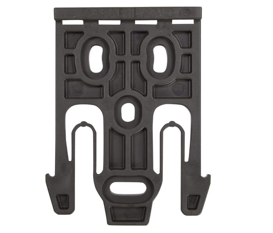 Musta QLS haarukka, kiinnittyy aseen koteloon, joka laitetaan telakkaan kiinni joka on yleensä Belt loopilla kiinni vyössä. QLS koteloille.